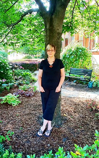 Since 2008 my art form has been the folk tradition of penny rugs, a form of textile art dating back at least to the Civil War. While I pay homage to the root of all penny rug designs through the use of layered circles, I have no desire to duplicate traditional designs in either form or color. My intention is to expand traditional forms and create new ones, hence my work can often follow non-traditional shapes. My materials of choice include felt, roving, silk, wool, and many forms of embellishment such as beads, embroidery threads of cotton, silk and wool, buttons, ceramics, and hand-sawn metalwork. I am also fond of making my works inter-active as touching a piece provides a sensory experience not usually associated with artwork.
