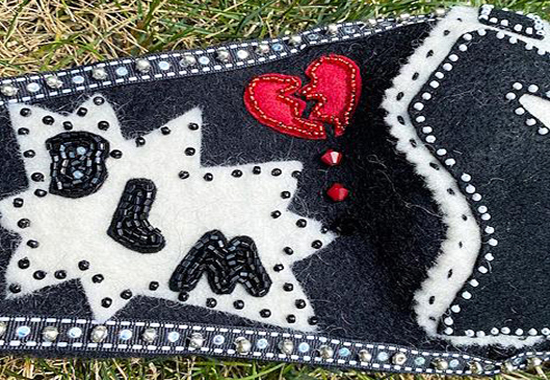 BLACK LIVES MATTER ART MASK -- DETAIL With the growth of the Black Lives Matter movement, a felt mask alluding to both the violence in the streets and our hope for the future seemed appropriate. -
