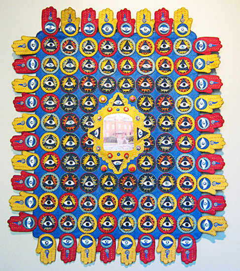 SACRED EYEThe felt piece that spoke to me most spiritually while making…contains a photo of the original Oddfellows building in the Historic Pullman District. -