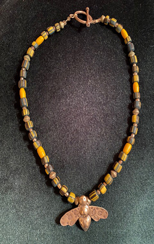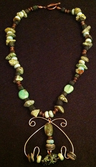 Over the years I have often turned my beads and metalworking into jewelry pieces. Using natural stones, glass blown beads, silver fittings, ceramic pieces and African glass trade beads I have created necklaces, bracelets and earrings.